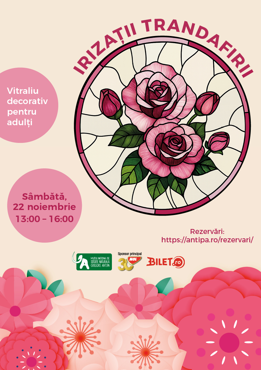 Muzeul Național de Istorie Naturală „Grigore Antipa” te invită la un atelier de pictură tip vitraliu dedicat tuturor celor care iubesc arta, fie că sunt la început de drum, fie că au deja experiență și caută o nouă sursă de inspirație.