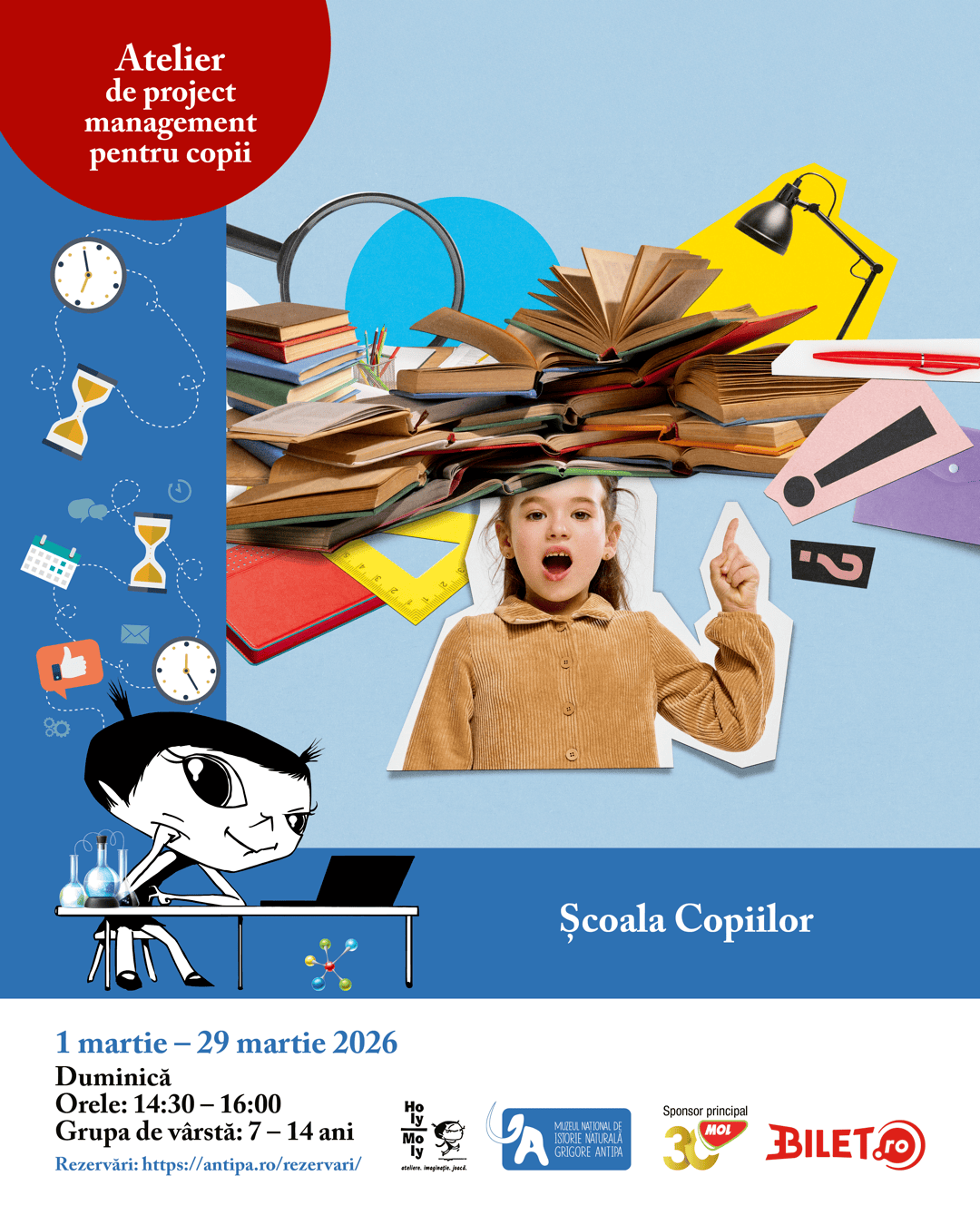 Muzeul Național de Istorie Naturală „Grigore Antipa”, în parteneriat cu Holy Moly, îi invită pe copiii cu vârste între 7 și 14 ani la noua ediție a proiectului „Project Management pentru Copii”, cu tema: „Școala Copiilor”.