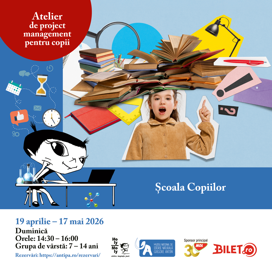 Muzeul Național de Istorie Naturală „Grigore Antipa”, în parteneriat cu Holy Moly, îi invită pe copiii cu vârste între 7 și 14 ani la noua ediție a proiectului „Project Management pentru Copii”, cu tema: „Școala Copiilor”.