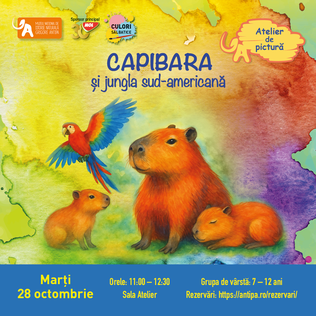 Muzeul Național de Istorie Naturală „Grigore Antipa” îi invită pe copiii pasionați de artă să descopere bucuria picturii în cadrul atelierului „Capibara și jungla sud-americană”. Acest atelier face parte din programul educativ și creativ „Culori sălbatice”.