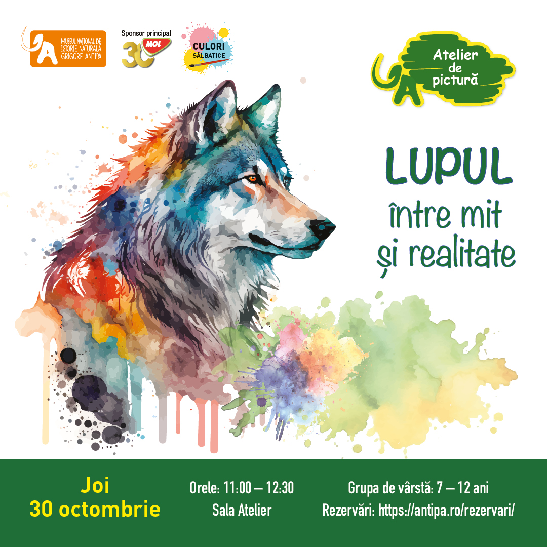 Muzeul Național de Istorie Naturală „Grigore Antipa” are plăcerea de a invita copiii pasionați de natură și desen să participe joi, 30 octombrie 2025, la atelierul tematic „Lupul – între mit și realitate”. Activitatea se desfășoară în cadrul programului educativ și creativ „Culori sălbatice” și urmărește stimularea curiozității, a expresivității artistice și a înțelegerii corecte a faunei sălbatice.
