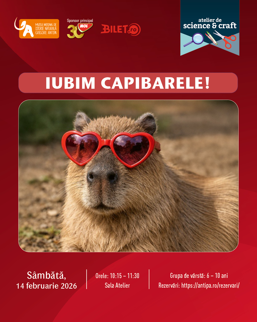 Atelierul se desfășoară sâmbătă, 14 februarie 2026, în Sala Atelier a Muzeului Antipa, între orele 10:15 – 11:30 și se adresează exclusiv copiilor.