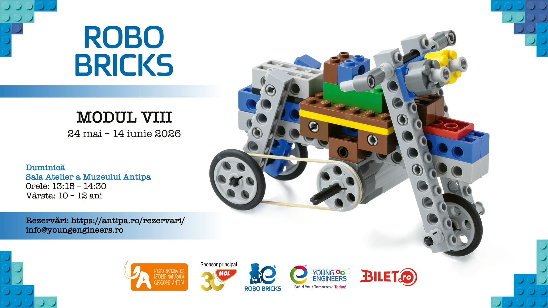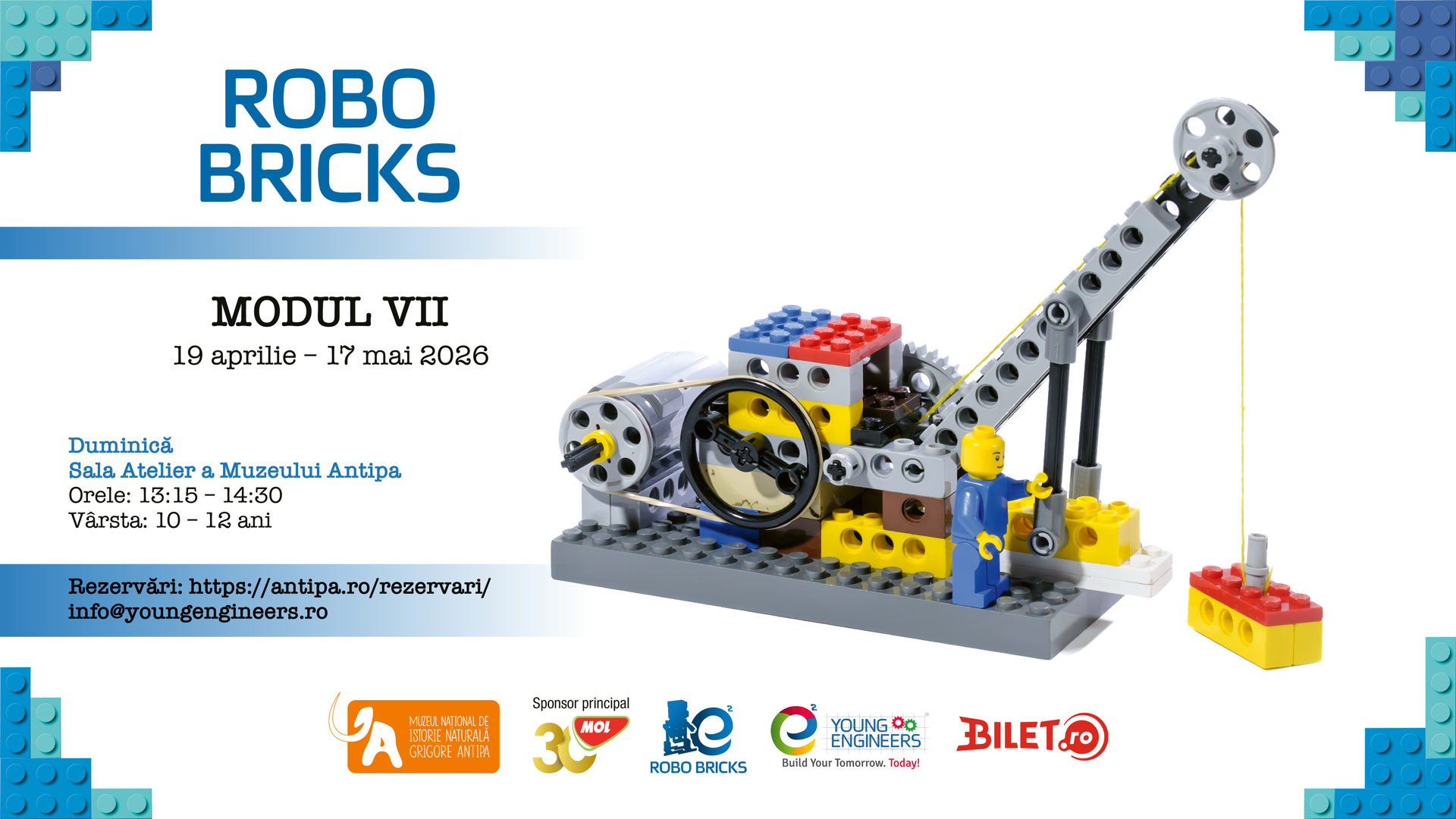Tema 4 (14 iunie 2026): Lecție liberă – construcție din imaginație, programare, înmânarea diplomelor de Tânăr Inginer – Robo Bricks
